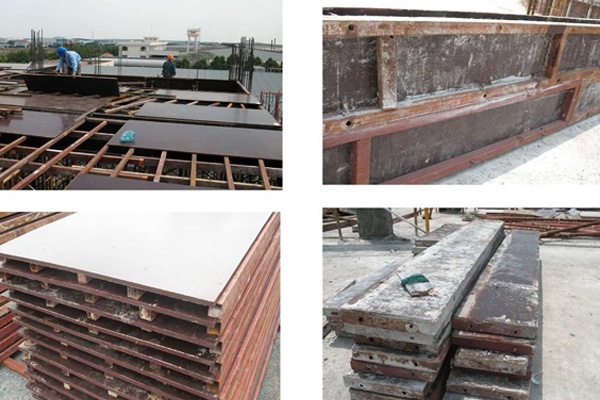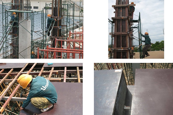 Coppha dầm và cột: Ván ép Coppha phủ phim được cắt theo kích thước thực tế của dầm, cột. Được gia cường bằng khuôn cốt thép định hình.